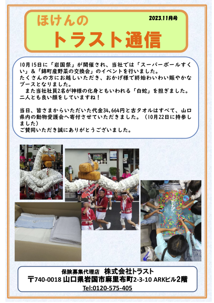 こんにちは🍁 10月15日に「岩国祭」が開催され、当社もイベントを行いました。